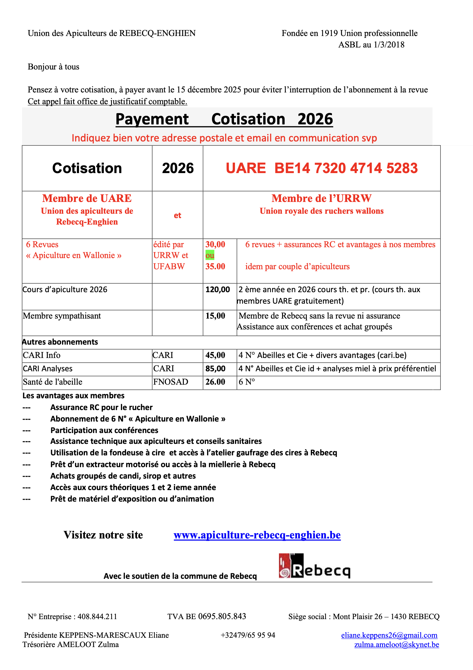 2023/11 AFSCA : recommandation de lutte contre la Varroase.